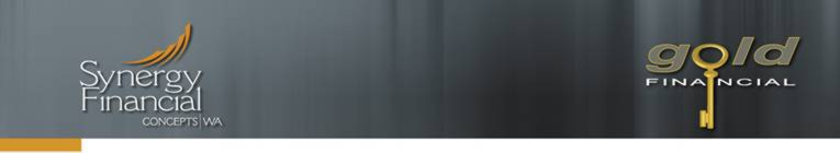 Martyn Forrester Authorised Representative Gold Financial Pty Ltd Perth Office Unit 4 / 2 Robert Street, Como, Western Australia 6152 PO Box 700, Como, Western Australia 6952 T (08) 9450 3468 F (08) 6210 1457 M 0409 314 987 E mforrester@westnet.com.au W www.synergyfinancialconcepts.com.au |